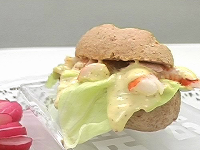Вкусный багет для любителей креветок.Состав:цельнозерновой багет — 4 штуки;редис — 3 штуки;креветки — 5 штук;лимонный сок — 25 гр;яйцо — 1 штука;несколько листьев салата;соль, чесночная соль, зернистая горчица, белый перец, оливковое масло, вишневый уксус — по вкусу. Язык: Русский